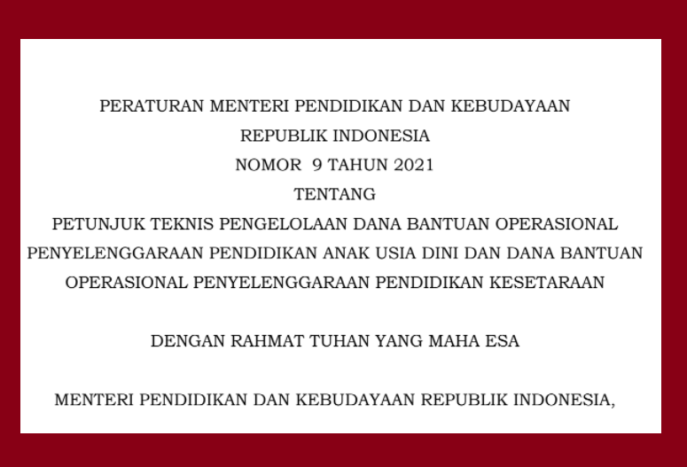 Permendikbud 6 Tahun 2021 Tentang Juknis Pengelolaan Dana Bos Reguler Jogloabang