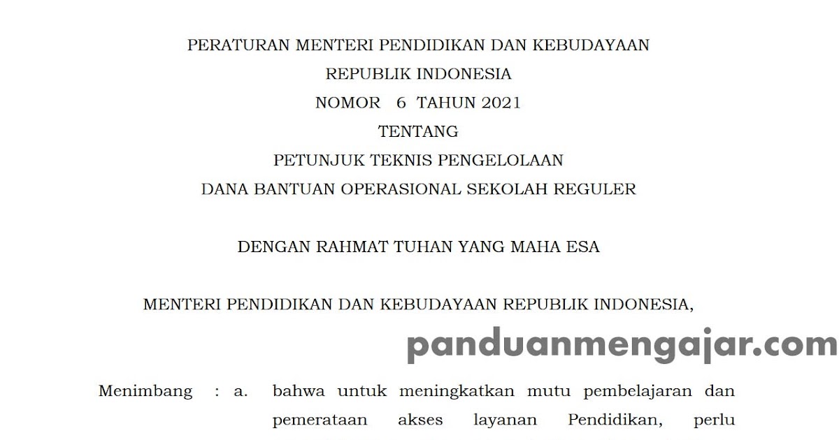 Permendikbud Nomor 6 Tahun 2021 Tentang Juknis Bos Reguler 2021 Blog Guru