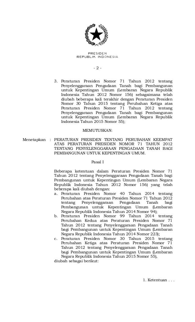 Peraturan Presiden Nomor 148 Tahun 2015 Tentang Perubahan Keempat Atas Peraturan Presiden Nomor 71 Tahun 2012 Tentang Penyelenggaraan Pengadaan Tanah Bagi Pembangunan Untuk Kepentingan Umum Nawasis National Water And Sanitation Information Services