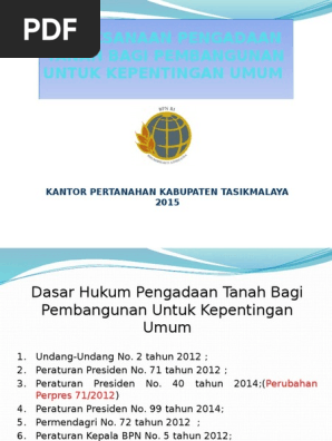 Pengadaan Tanah Bagi Pembangunan Untuk Kepentingan Umum Sesuai Uu Nomor 2 2012 Perpres No 71 2012 Peraturan Kepala Bpn Nomor 5 Tahun 2012 Pdf Document