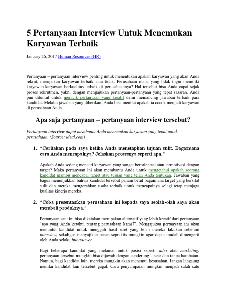 Kupdf Net Bocoran Pertanyaan Dan Jawaban Wawancara Kerja