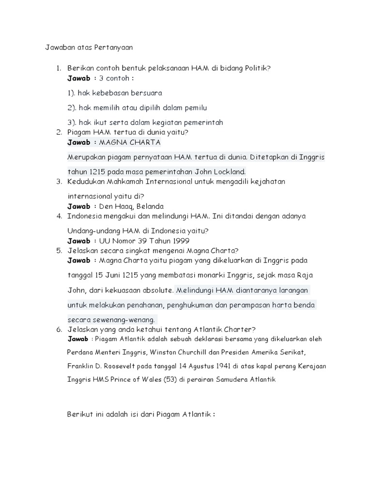 Contoh Soal Tentang Ham Dan Kunci Jawabannya Muttaqin Id