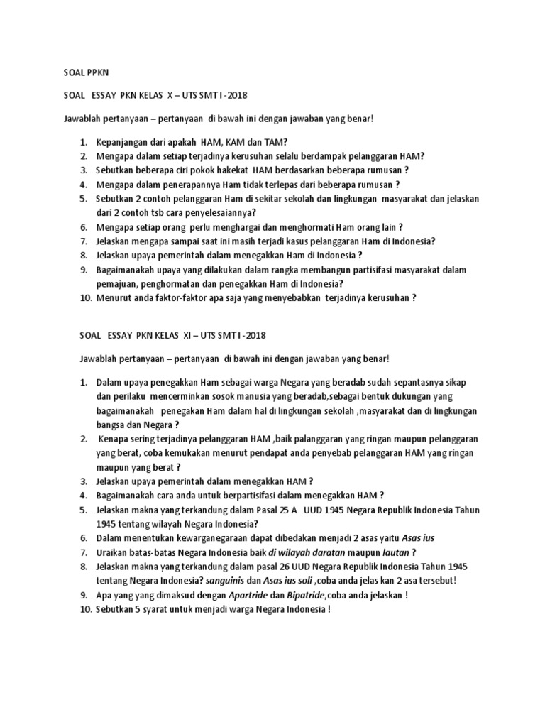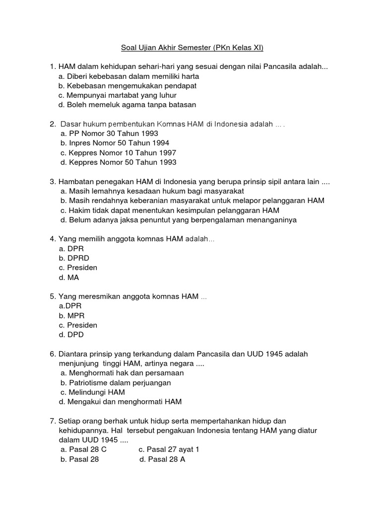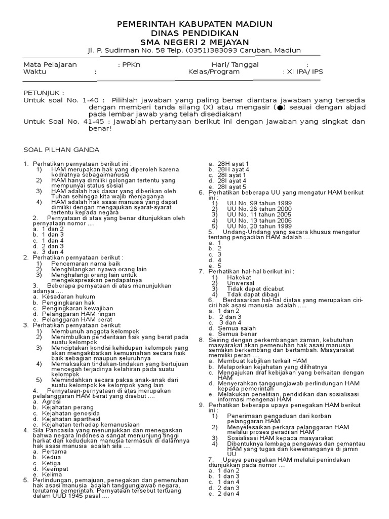 Soal Pkn Hak Asasi Manusia Kelas Xi