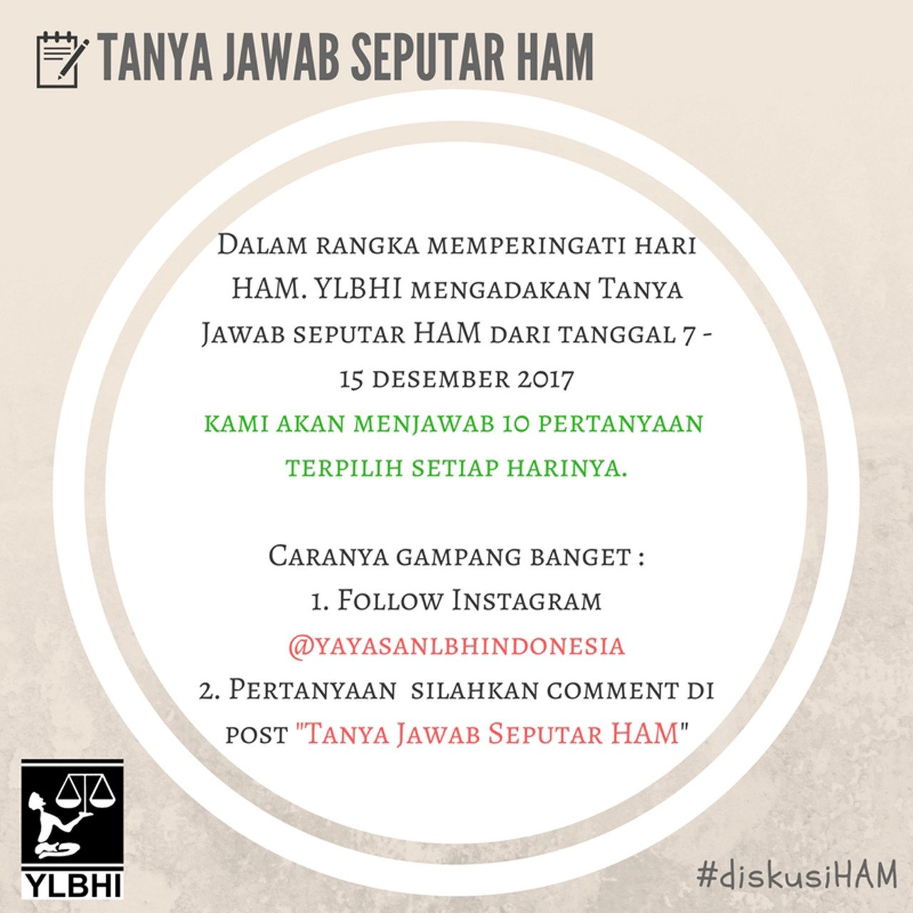 Yayasanlbhindonesia On Twitter Dalam Rangka Memperingati Hari Ham Ylbhi Mengadakan Tanya Jawab Seputar Ham Dari Tanggal 7 15 Desember 2017 Kami Akan Menjawab 10 Pertanyaan Terpilih Setiap Harinya Caranya 1 Follow Ig Yayasanlbhindonesia