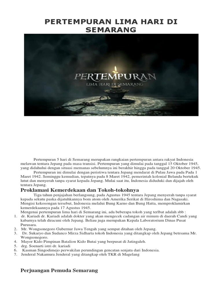 Pertempuran Lima Hari Di Semarang Smk Pika