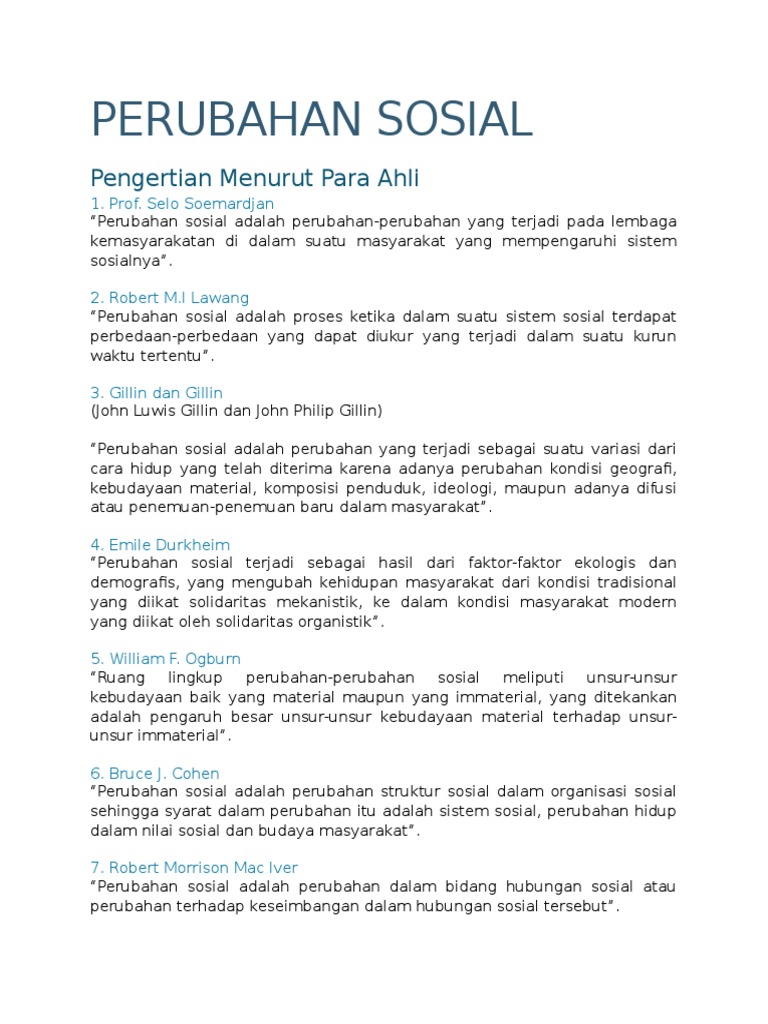 Perubahan Sosial Budaya Pengetian Bentuk Ahlinya