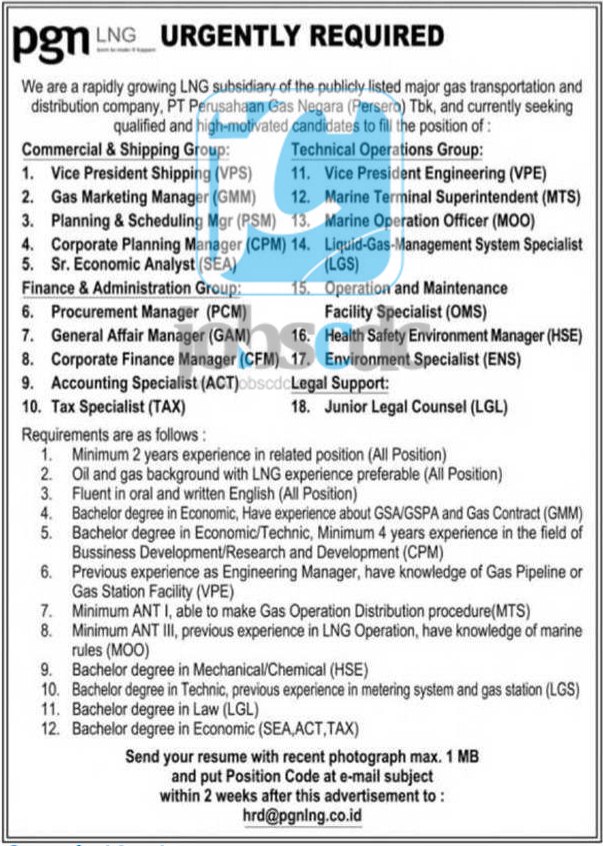 Lowongan Kerja Bumn Terbaru Oktober Terbaru Pt Pgn Lng Indonesia