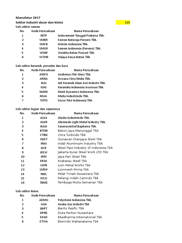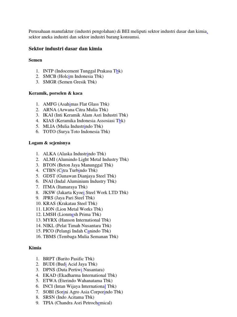 100 Kode Saham Perusahaan Manufaktur Indonesia Terdaftar Di Bei