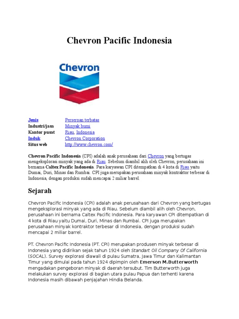 Profil Pt Chevron Pacific Indonesia Pusat Bisnis Indonesia