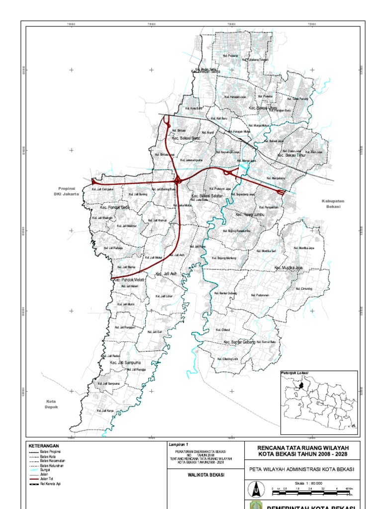 Peta Kota Bekasi Ukuran Besar Lengkap Timur Barat Utara