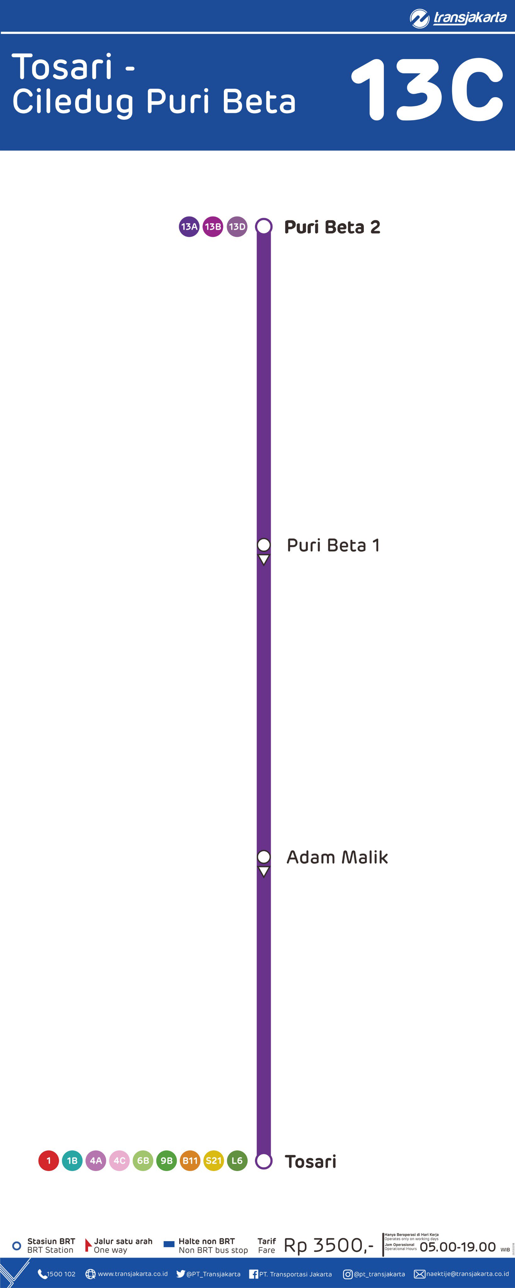 Transportasi Jakarta On Twitter Jam Operasional Rute 13c Tosari Ciledug Puri Beta Diperpanjang Dari 05 00 09 00 Menjadi 05 00 19 00 Lihat Peta Rute Lengkap Layanan Transjakarta Di Https T Co Sa5yfchzns Atau Klik