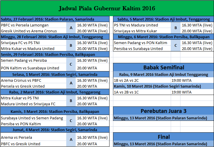 Jadwal Semifinal Piala Gubernur Kaltim 2016 Dan Hasil Skor
