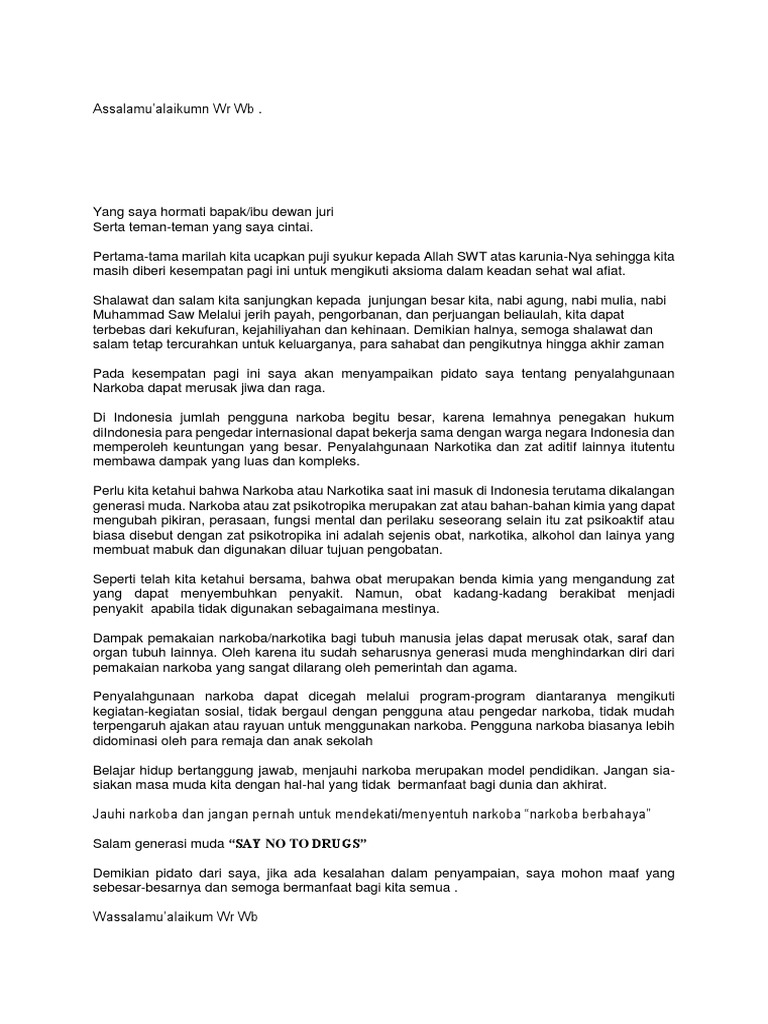Contoh Teks Pidato Bahasa Arab Tentang Narkoba Rar Upd
