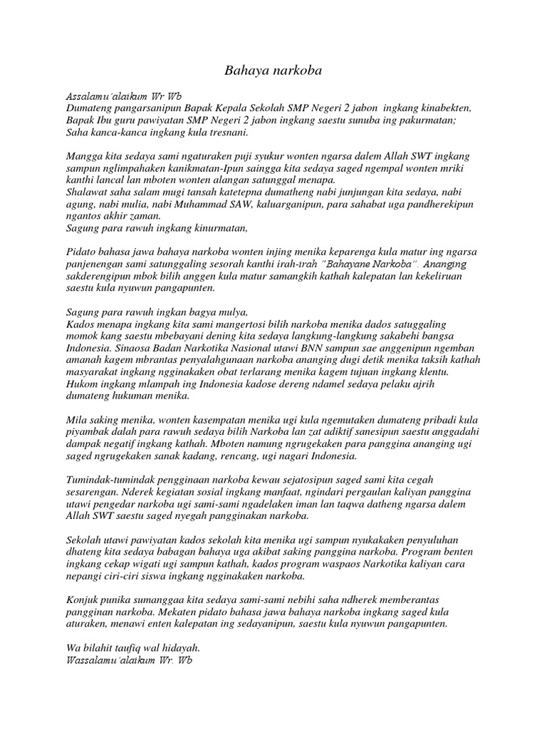 Teks Pidato Bahasa Jawa Tentang Narkoba Berbagai Teks Penting