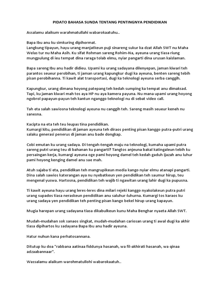 Contoh Pidato Sunda Tentang Pendidikan Kumpulan Contoh Terbaru