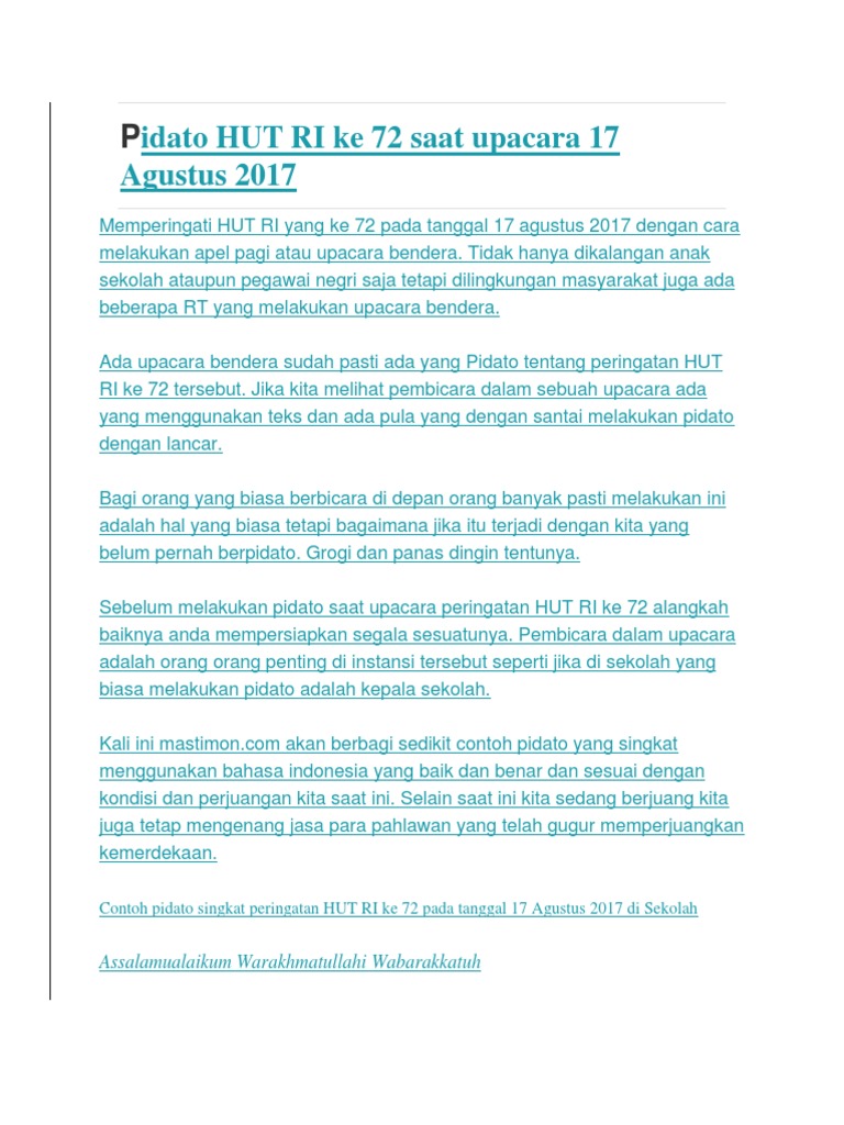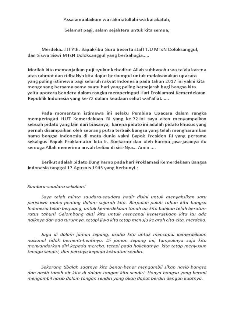 Contoh Pidato Pada Upacara Bendera Hut Ri Ke 72 Tahun 2017 Info Gtk Terbaru