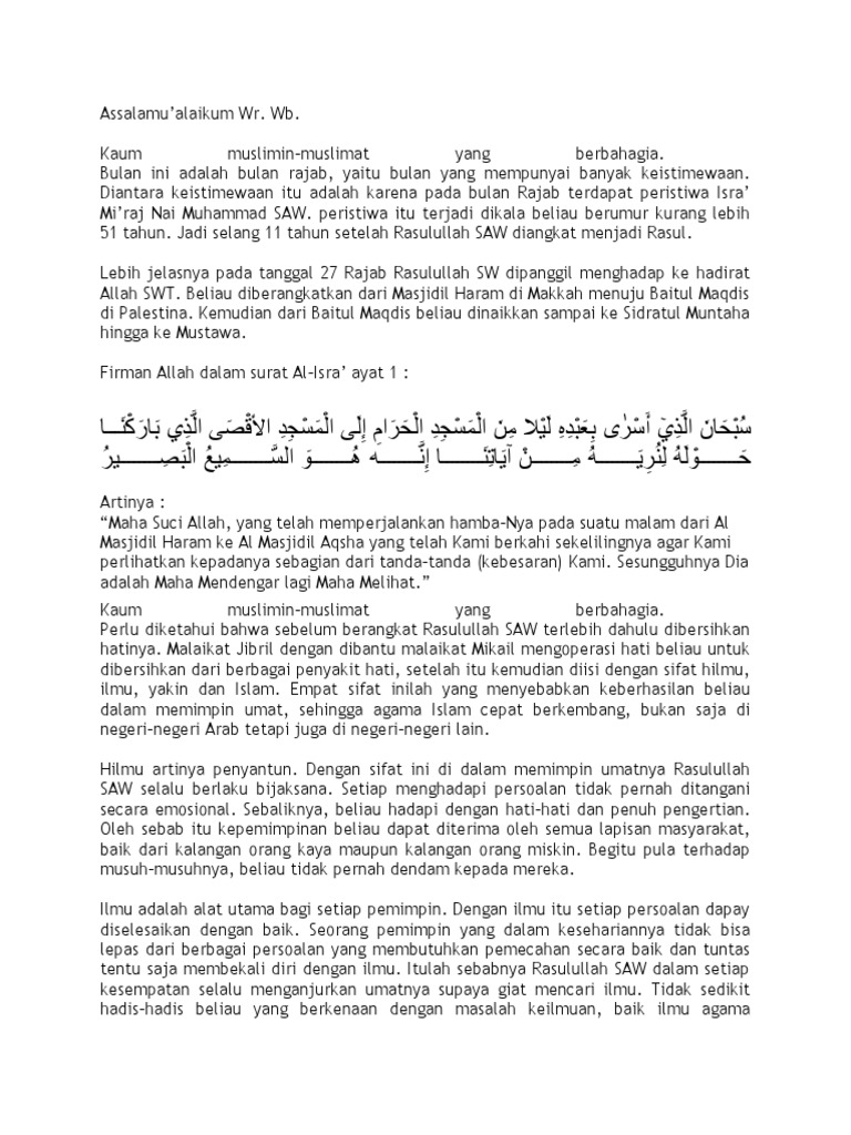 Pidato Isra Miraj Singkat Teks Dan Naskah Dunia Pondok