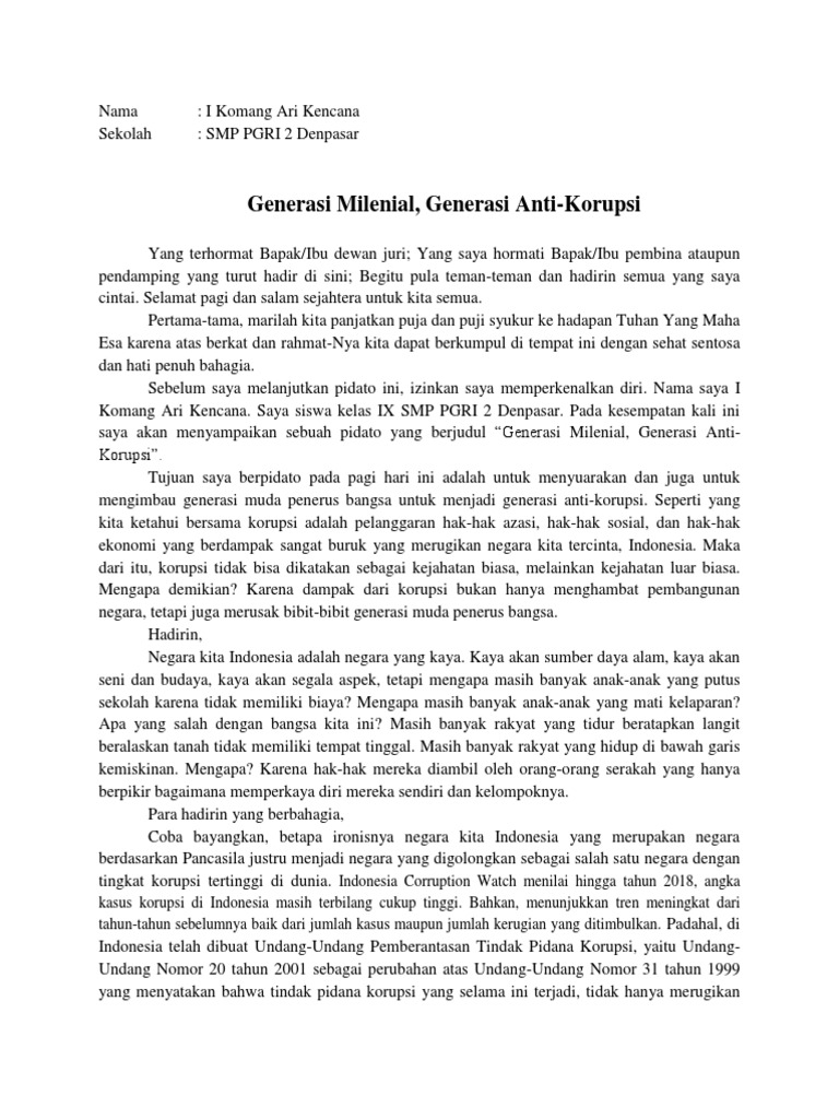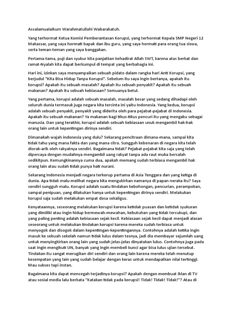 Contoh Naskah Pidato Singkat Tentang Korupsi 1 Pdf Document