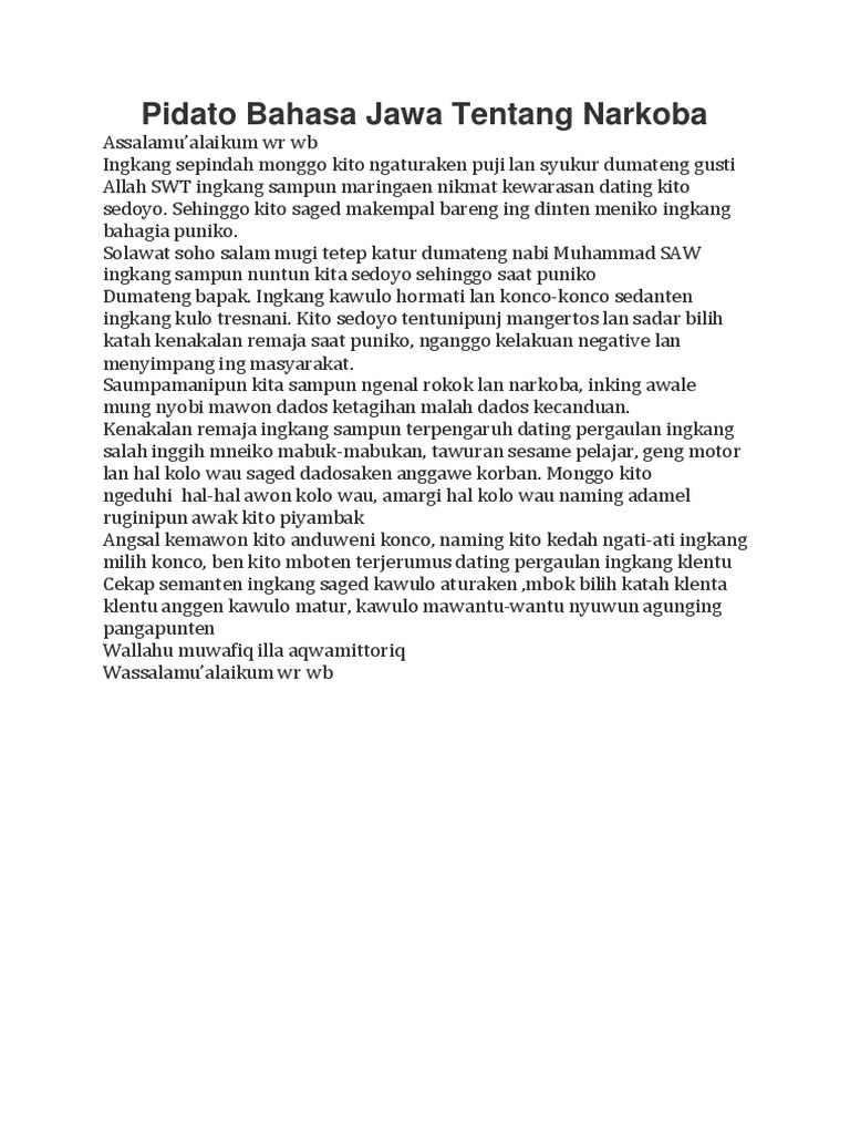 Pidato Bahasa Jawa Tentang Bahaya Narkoba Bagi Generasi Muda Delinews Tapanuli