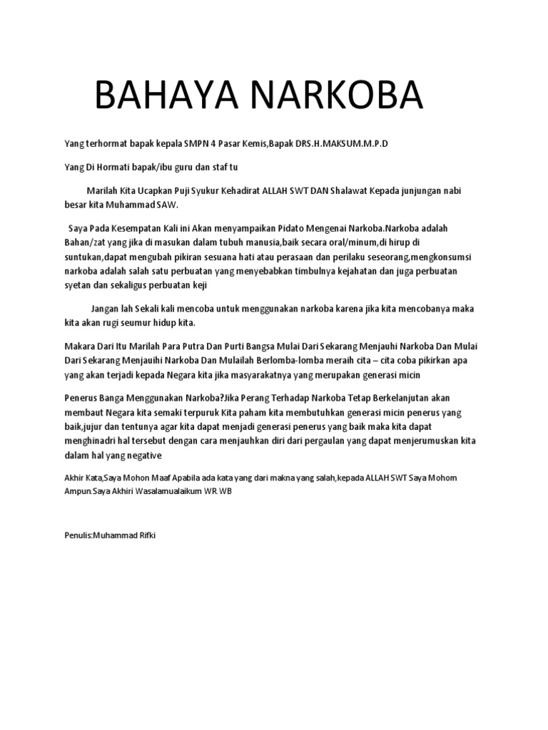 57133489 Contoh Pidato Bahasa Inggris Tentang Narkoba Dan Artinya Docx Document