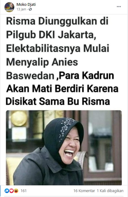 Cek Fakta Unggul Elektabilitas Di Pilgub Dki Tri Risma Akan Sikat Kadrun Ini Faktanya