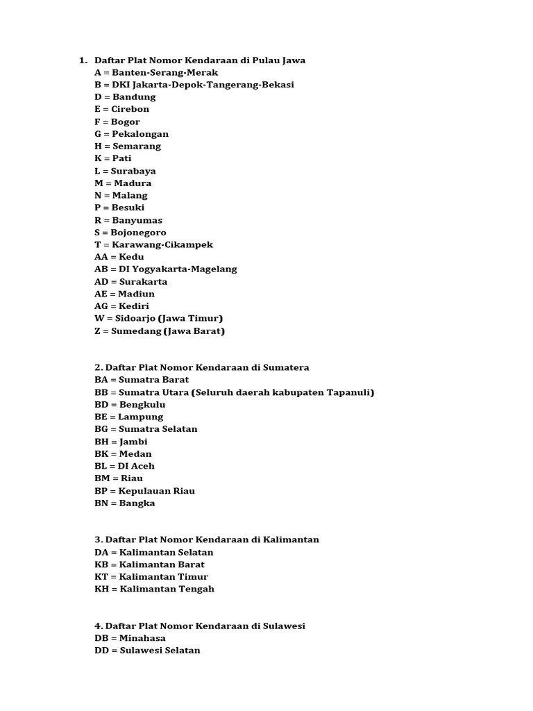 Daftar Kode Plat Kendaraan Di Seluruh Wilayah Di Indonesia Yang Lengkap Semua Halaman Kids
