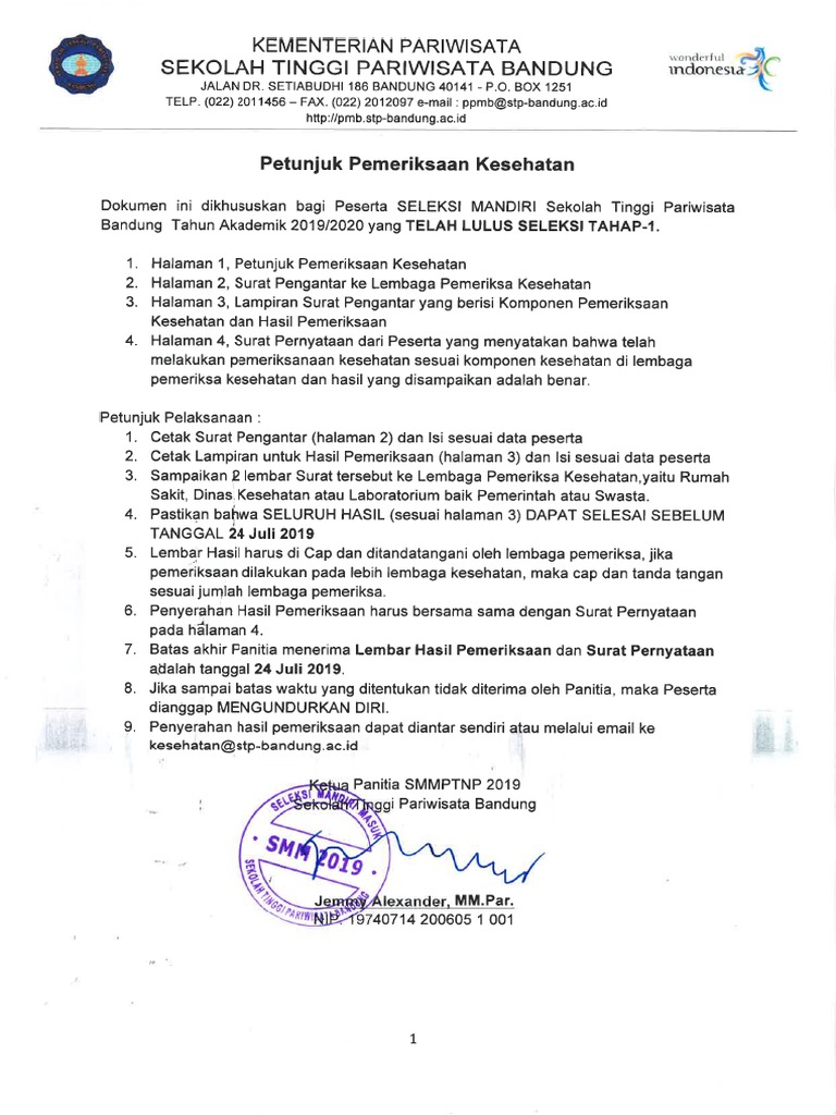 Scanned With Camscanner Pmb Stp Panitia Seleksi Mandiri Masuk Sekolah Tinggi Pariwisata Bandung Pdf Document