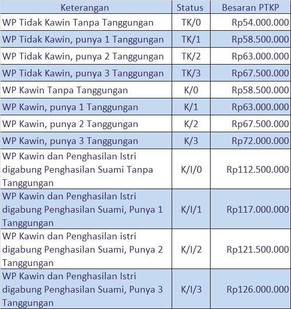 Ptkp 2021 Ini Besar Penghasilan Tidak Kena Pajak