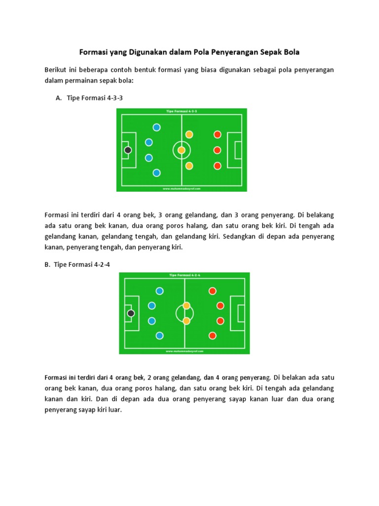 15 Formasi Sepak Bola Lengkap Olahragapedia Com