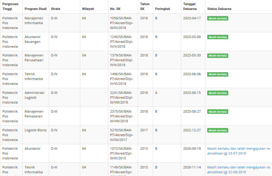 Informasi Sk Akreditasi Politeknik Pos Indonesia Tasikplaza