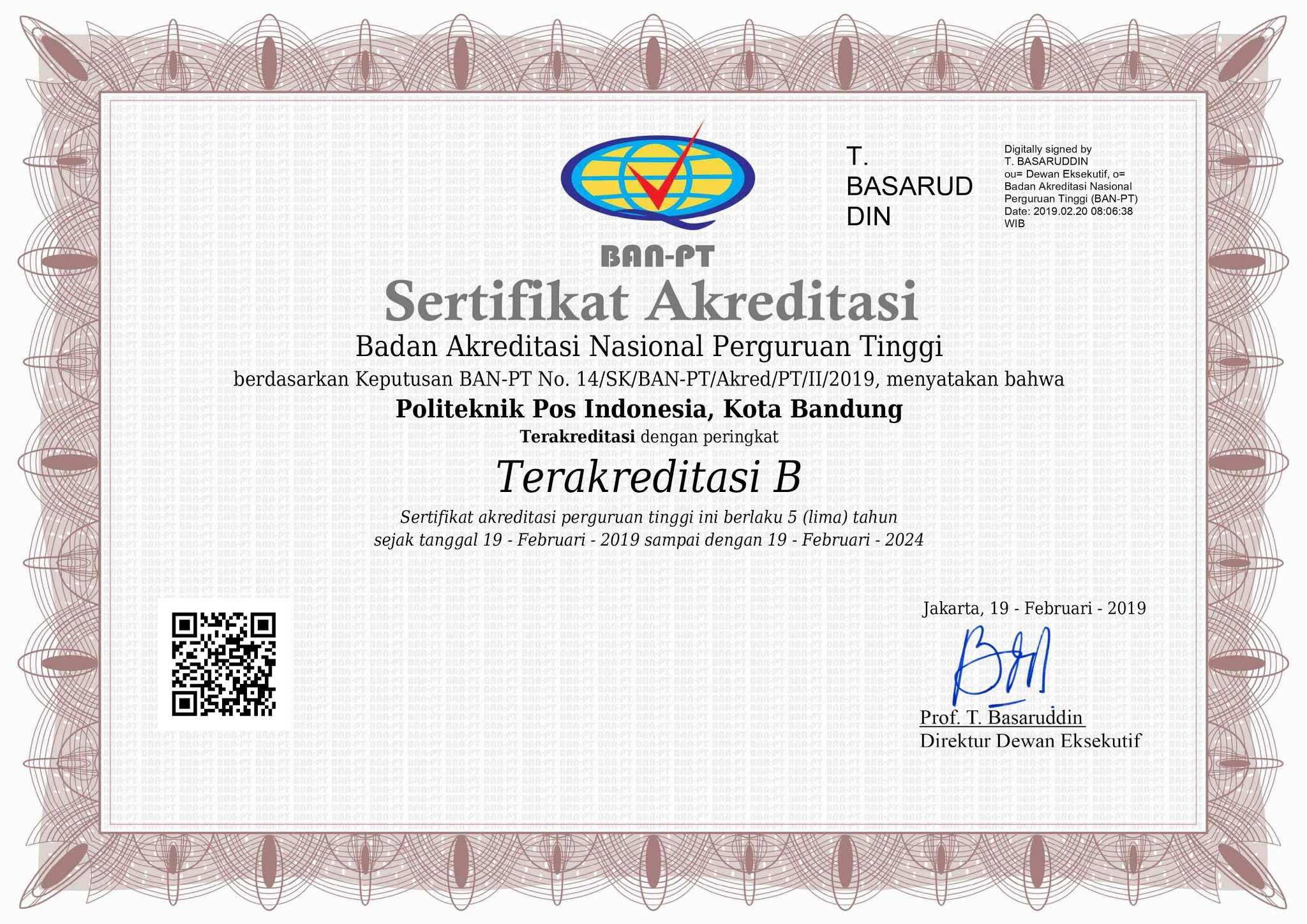 Sertifikat Akreditasi Politeknik Pos Indonesia