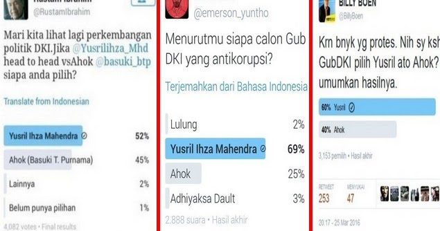 Selalu Kalah Dari Yusril Pendukung Ahok Bikin Polling Tanpa Cantumkan Nama Yusril Portal Islam