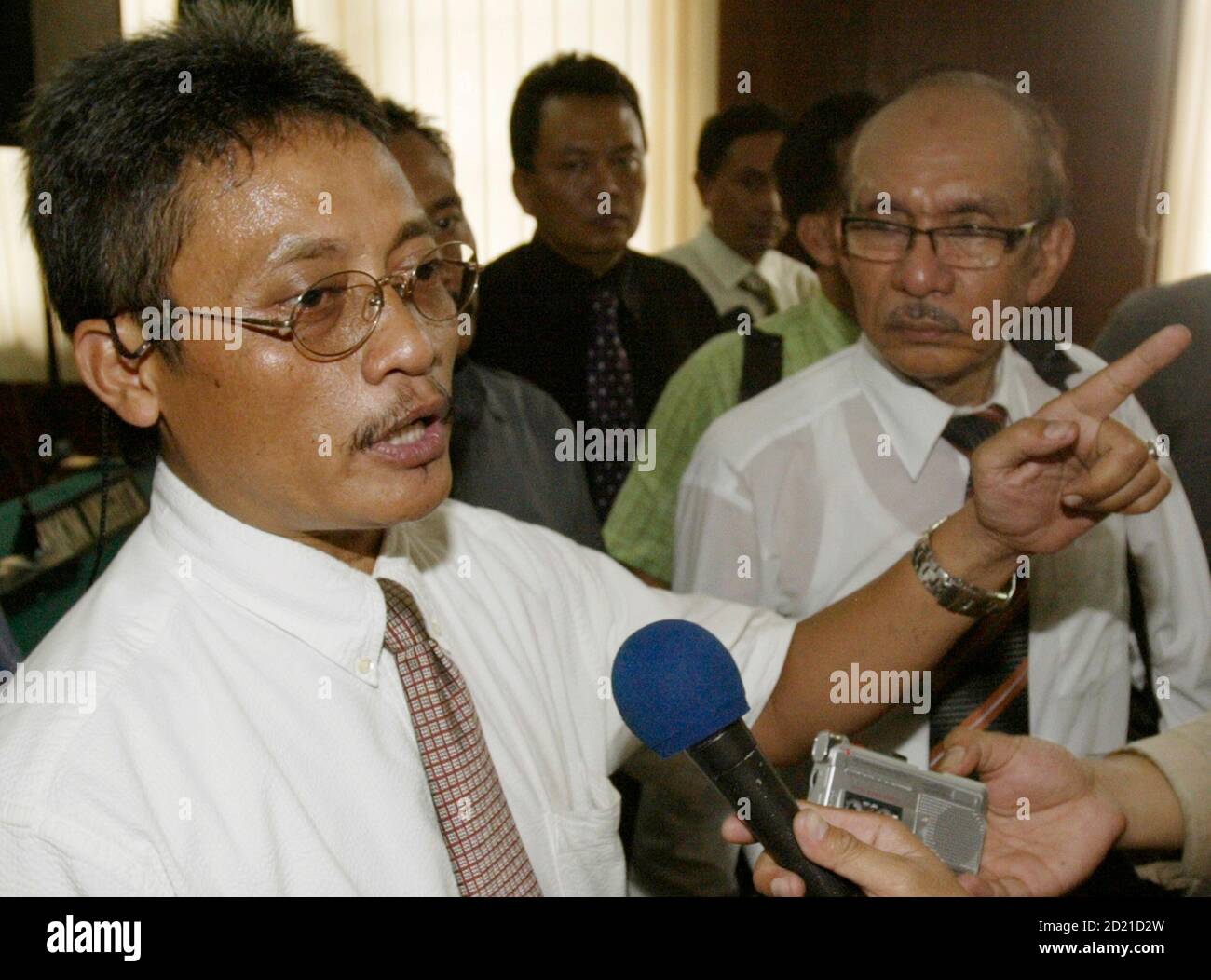 Indonesian Pilot Of Garuda Indonesia Airline Pollycarpus Budihari Priyanto Speaks To Journalists As He Leaves Central Jakarta Court September 12 2007 A Hearing In Which Prosecutors Appealed The Decisions And Filed A