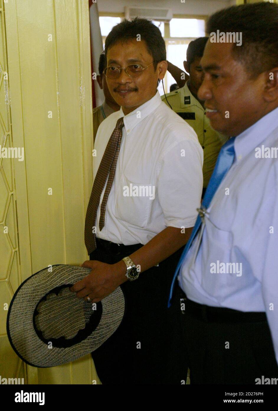 Court Officials Escort Pollycarpus Budihari Priyanto A Garuda Airways Pilot At The Central Jakarta Court August 9 2005 A Pilot Of Indonesia S Flag Carrier Garuda Went On Trial Tuesday On The Charge