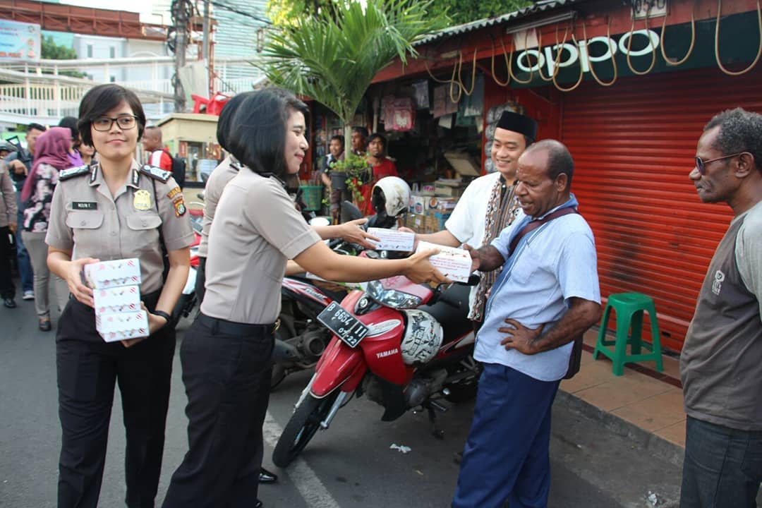 Puluhan Polwan Cantik Polres Jakarta Pusat Bagikan Takjil Gratis