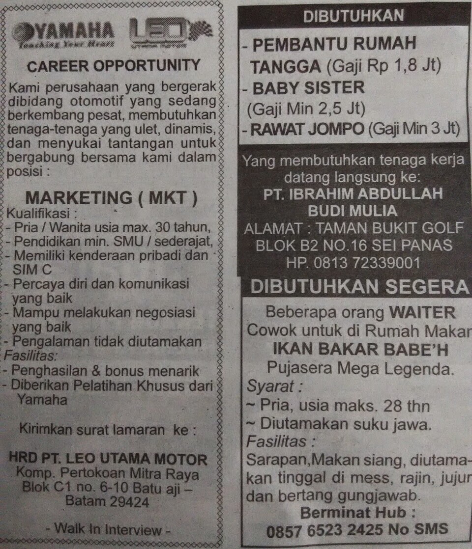 Loker Batam Lowongan Kerja Di Koran Posmetro Batam Senin 2 Februari 2015