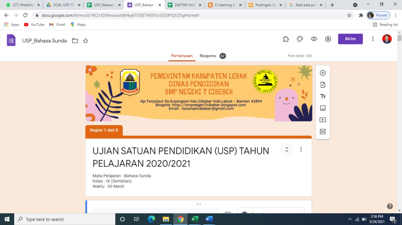 Smp Negeri 7 Cibeber Pelaksanaan Ujian Satuan Pendidikan Usp Smp Negeri 7 Cibeber Tahun Ajaran 2020 2021