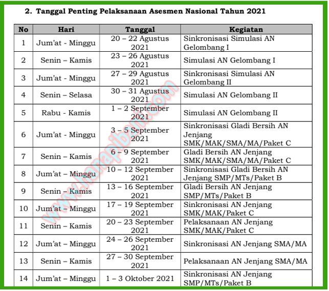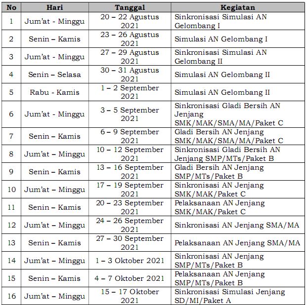 Tanggal Penting Pelaksanaan Anbk Tahun 2021