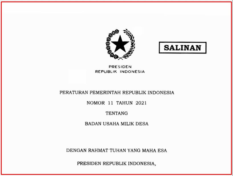 Download Peraturan Pemerintah Nomor 11 Tahun 2021 Tentang Badan Usaha Milik Desa Juragan Desa