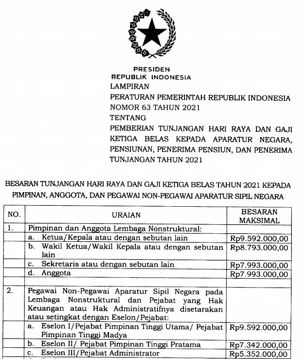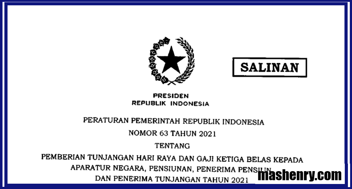 Pp 63 Tahun 2021 Tentang Pemberian Thr Dan Gaji Ke 13 Kepada Aparatur Negara Pensiunan Penerima Pensiun Dan Penerima Tunjangan Tahun 2021 Mashenry Com