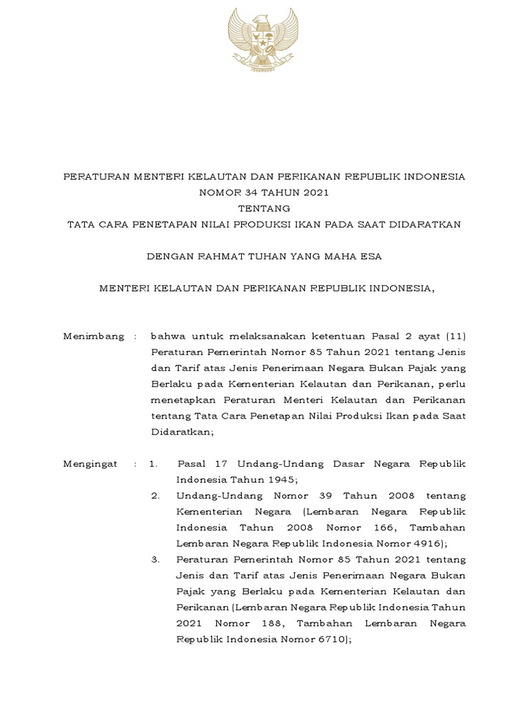 Peraturan Pemerintah Nomor 34 Tahun 2021