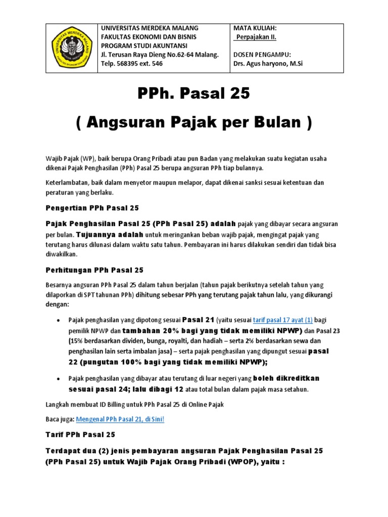 Pph Pasal 25 1 Pph Pasal 25 Landasan