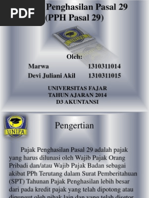 Pajak Penghasilan Pasal 29 Pph Pasal 29 Download Pdf