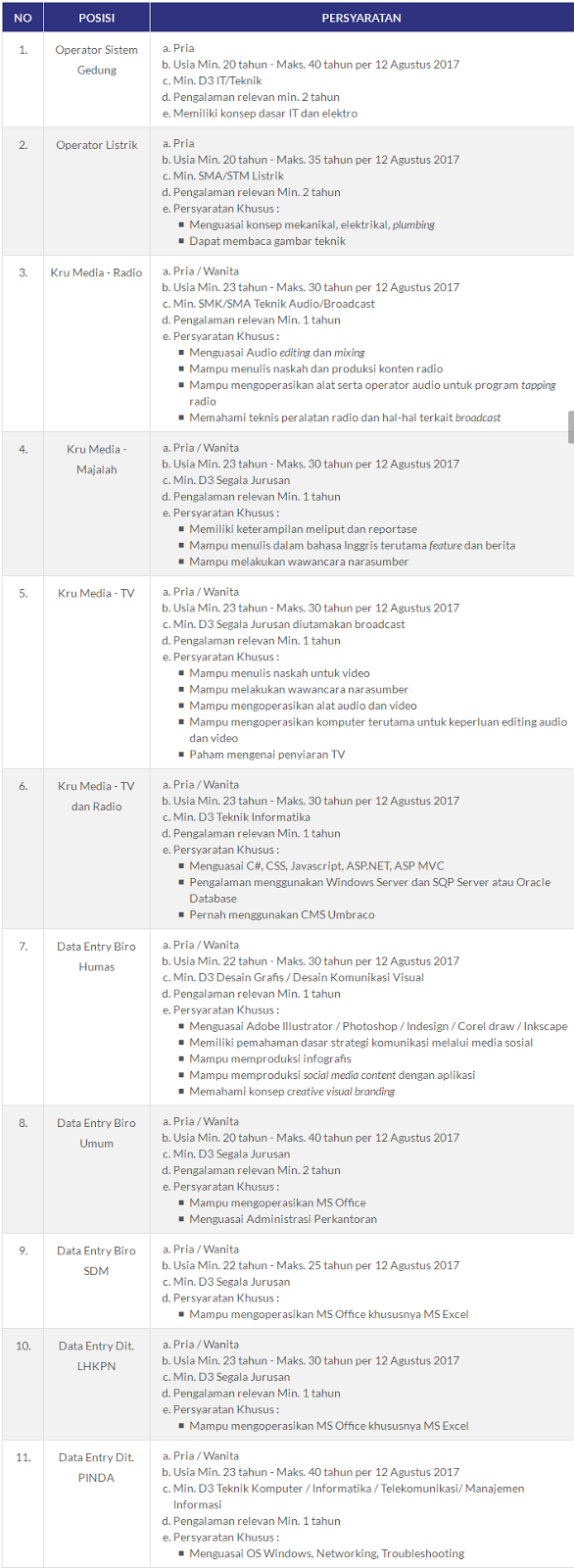Informasi Lowongan Kerja Indonesia