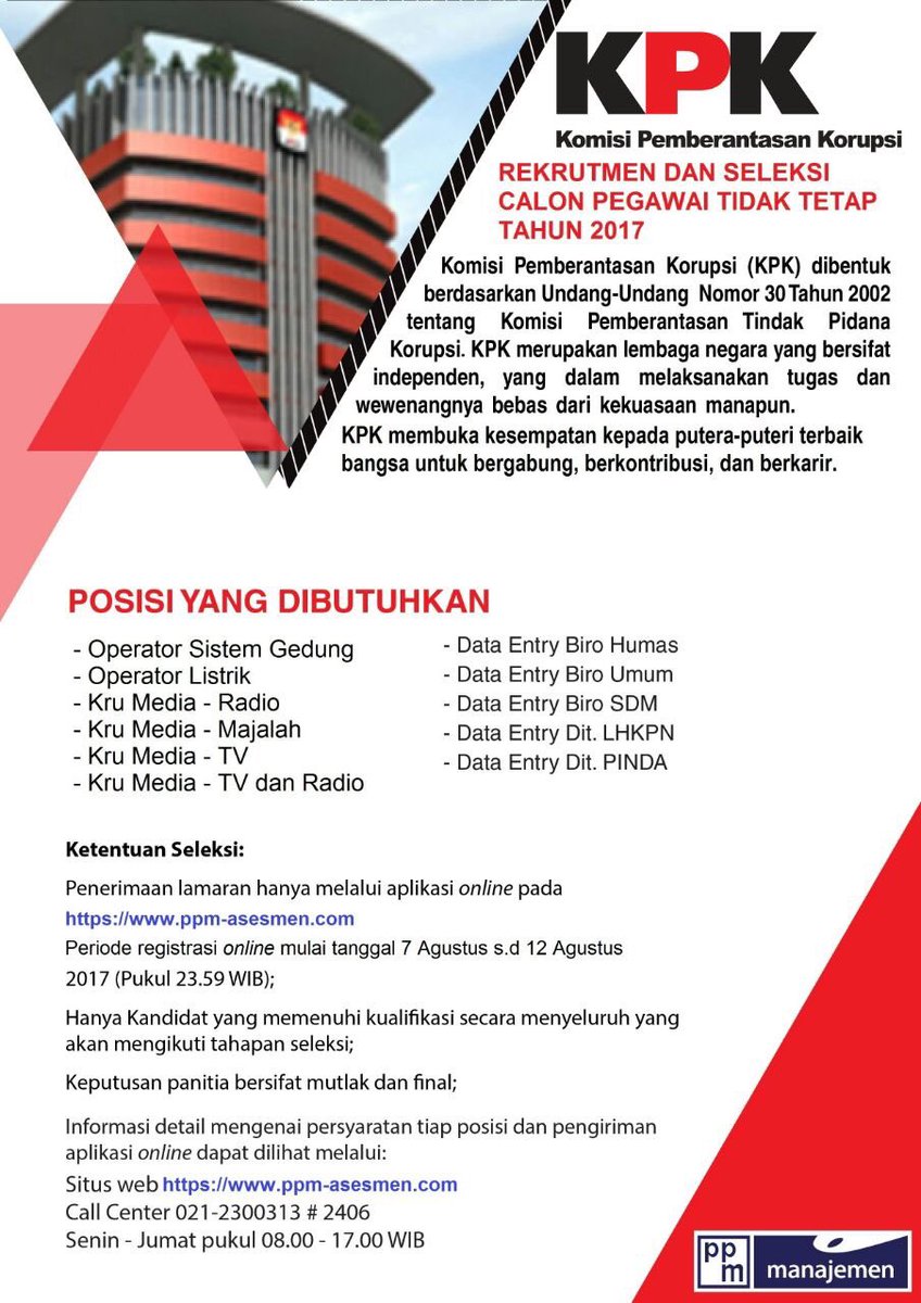 Kpk En Twitter Lowongan Kerja Untuk Pegawai Tidak Tetap Di Kpk Info Lengkap Di Https T Co Lulononihq