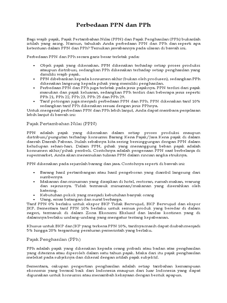 Perbedaan Ppn Dan Pph