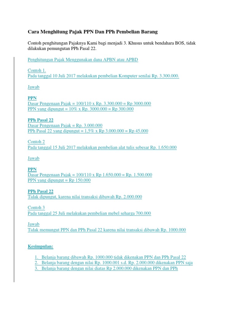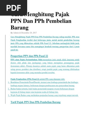 Cara Menghitung Pajak Ppn Dan Pph Pembelian Barang Pdf