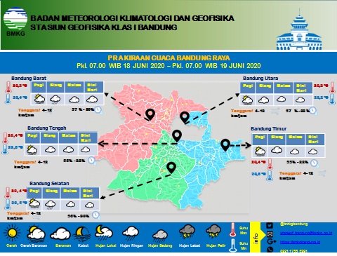 Bmkg Bandung On Twitter Infografis Prakiraan Cuaca Bandung Dan Sekitarnya Berlaku Hari Kamis Tanggal 18 Juni 2020 Pukul 07 00 Wib Dapat Diakses Juga Di Website Stageof Bandung Https T Co Dxhbygqqcn Infobmkg Prakiraancuaca Bmkgmultisektoral