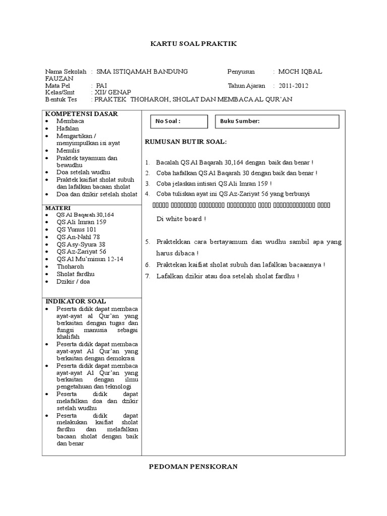 Soal Ujian Praktik Pai Sd Mi Tahun 2020 Websiteedukasi Com