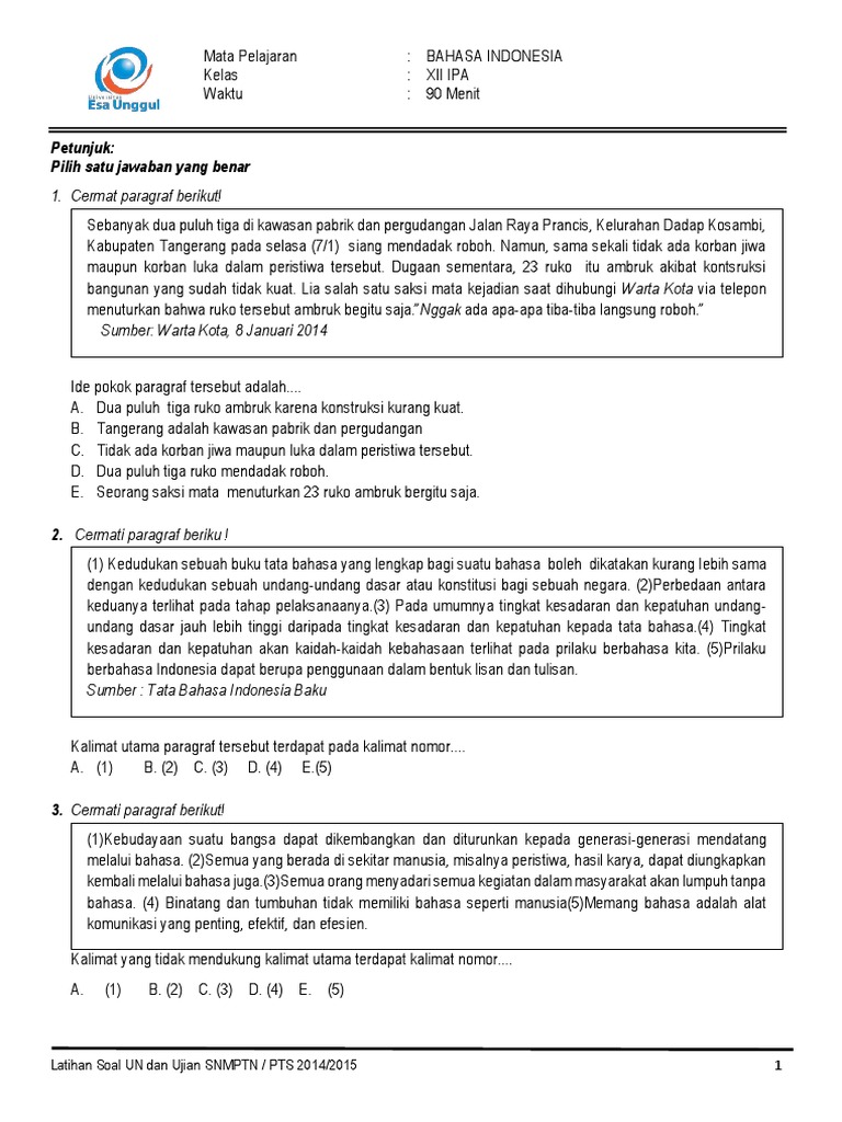 Latihan Soal Un Bahasa Indonesia Sma Kami